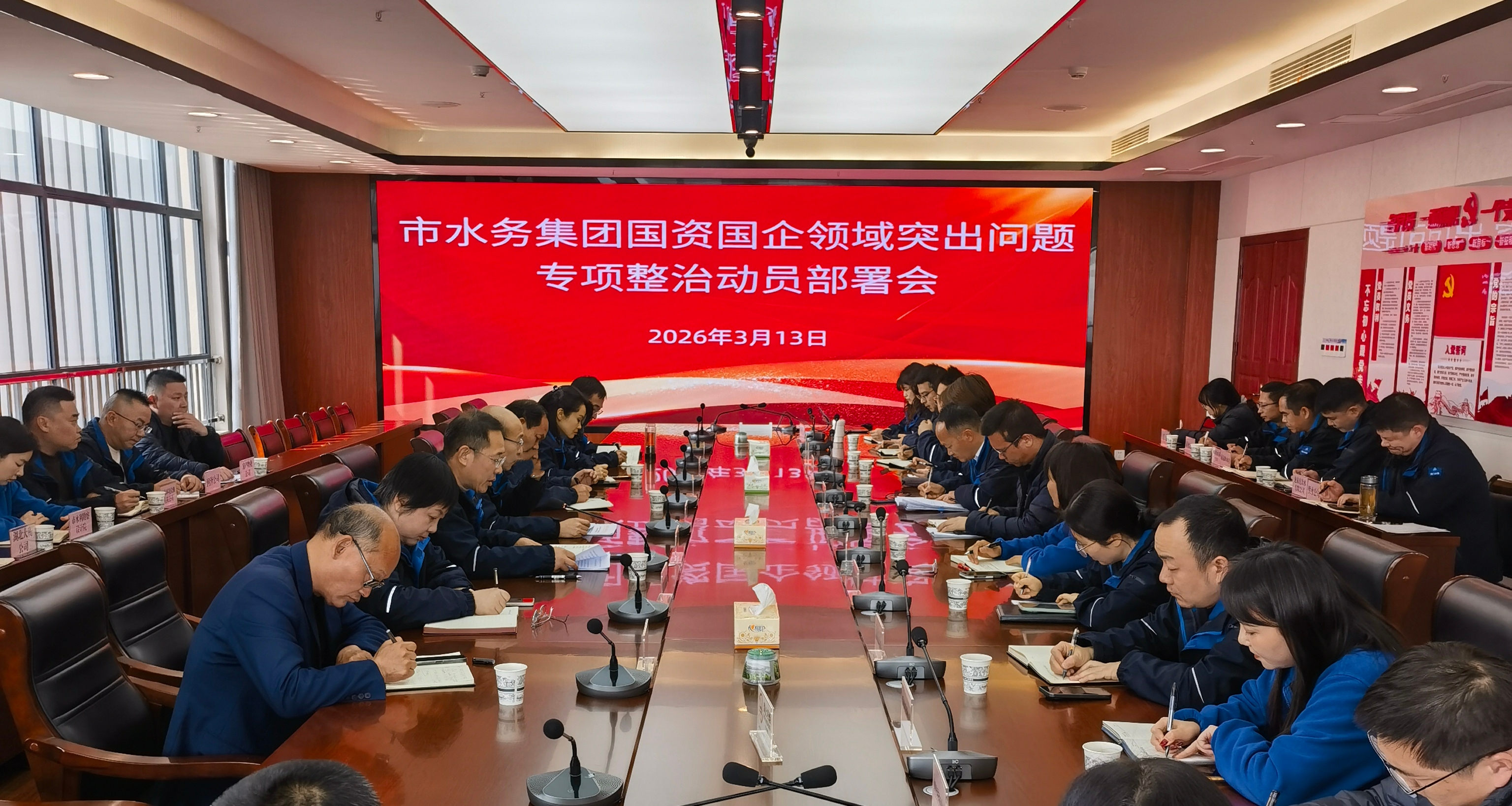 3月13日下午,市水務(wù)集團(tuán)召開國資國企領(lǐng)域突出問題專項(xiàng)整治動(dòng)員部署會(huì)。集團(tuán)黨委書記、董事長陳永根出席會(huì)議并作動(dòng)員講話,派駐紀(jì)檢組組長、集團(tuán)黨委委員、紀(jì)委書記劉高軼主持會(huì)議。集團(tuán)領(lǐng)導(dǎo)班子成員和各單位(部門)主要負(fù)責(zé)人參加會(huì)議。